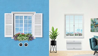 Klimaanlagen ohne Außengerät sind eine hervorragende Lösung für die Kühlung von Räumen, ohne dass ein Außengerät installiert werden muss. Dies ist besonders nützlich in historischen Zentren, in denen es oft nicht möglich ist, externe Änderungen an Gebäuden vorzunehmen. Ihre Bedienung ist sehr einfach: Durch zwei Löcher in der Wand, eines für den Eintritt von Außenluft und das andere für den Austritt heißer Luft, kann die Klimaanlage ohne externe Einheit die Luft im Raum kühlen.