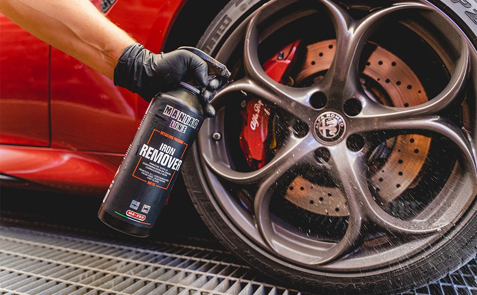 Iron Remover von Maniac Line ist das Mafra-Produkt zur Entfernung von Verunreinigungen an Autorädern, Karosserien und Fenstern.