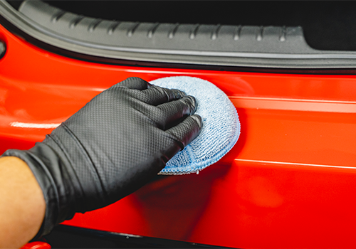 Schritt 3 Verteilen Sie das Produkt mit unserem sauberen und trockenen „Poliertuch“ gleichmäßig auf der Oberfläche und beenden Sie den Vorgang mit einem trockenen und sauberen Mikrofasertuch.